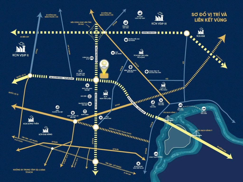Dự án Khu nhà ở Hướng Dương tọa lạc tại phường Tân Hiệp, khu vực được xem là cửa ngõ kết nối giữa TP.HCM mở rộng và các đô thị vệ tinh năng động. Nơi đây giáp ranh các tuyến giao thông huyết mạch như Đại lộ Nam Tân Uyên và Đại lộ Uyên Hưng – Thủ Dầu Một, cho phép cư dân di chuyển nhanh chóng đến Bình Dương, Đồng Nai, TP.HCM và các khu vực kinh tế trọng điểm khác.